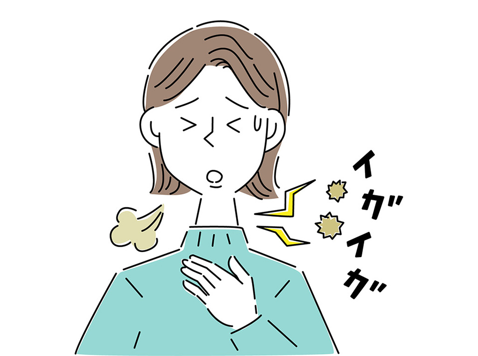 のどのイガイガ、ヒリヒリ、胸焼け、ゲップなどは定型的な症状。